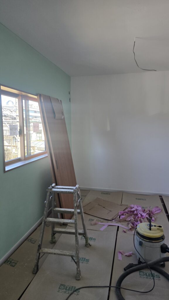 今回は新築なので下地の状態も良く、パテ処理→サンダー掛け→シーラー塗布と、順調に進みました。
