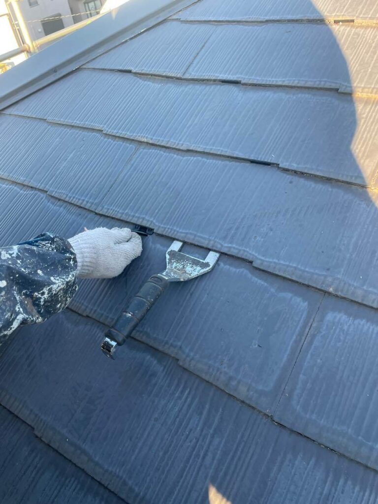 スレート屋根の塗装では、塗膜によって屋根材同士が密着してしまう「縁切り不足」がよく問題になります。