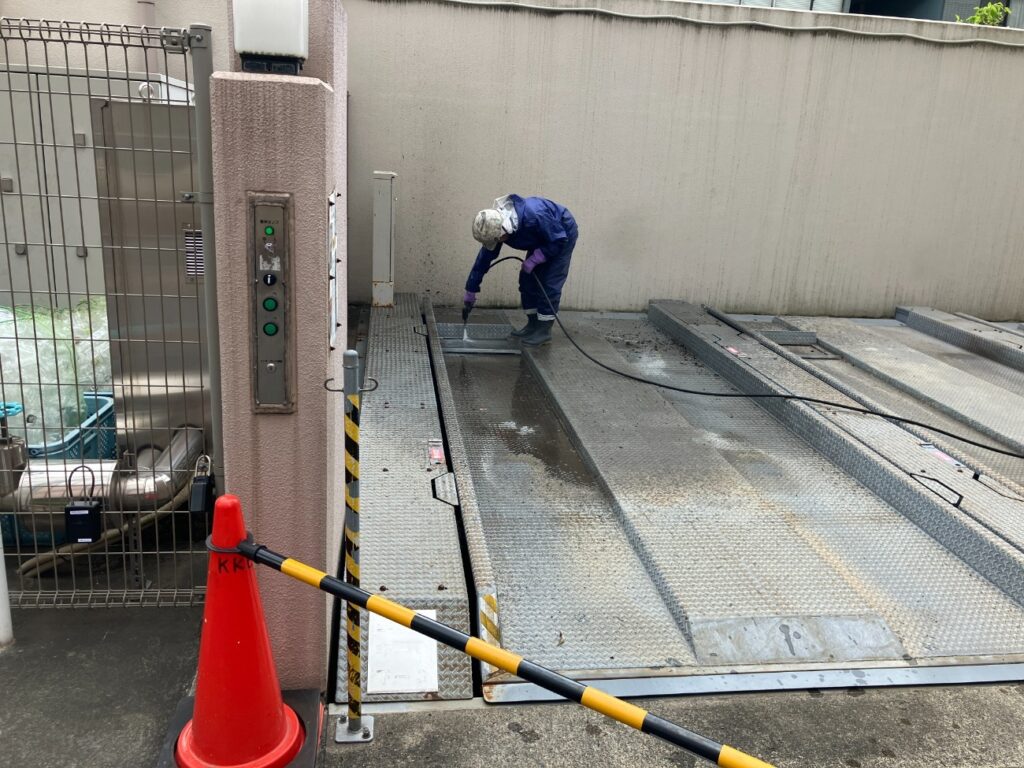 • 油分・汚れの除去 機械式駐車場はグリスや油が付着しやすいため、徹底的に洗浄します。