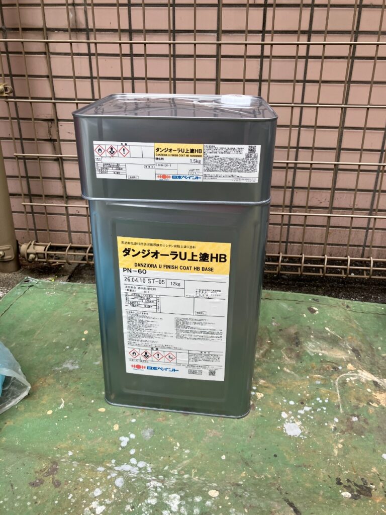 下塗りが乾いたら、次は上塗りへ。 今回は耐久性の高いダンジオーラを使用しています。