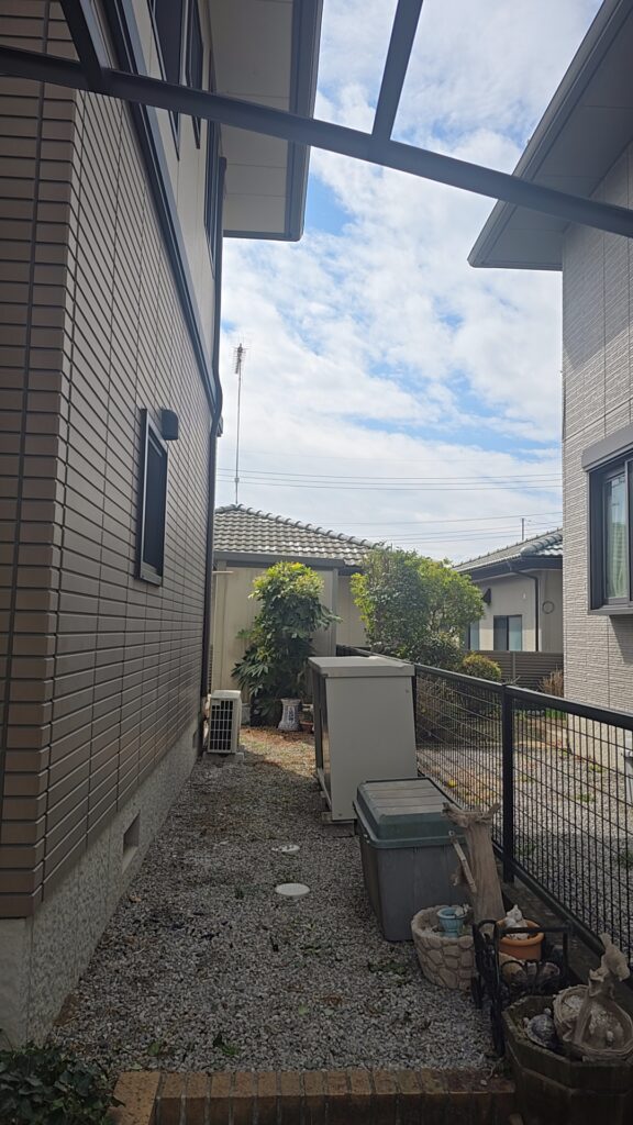 足場を組む際、カーポートの屋根が近接していると作業スペースが確保できず、職人の安全にも影響します。