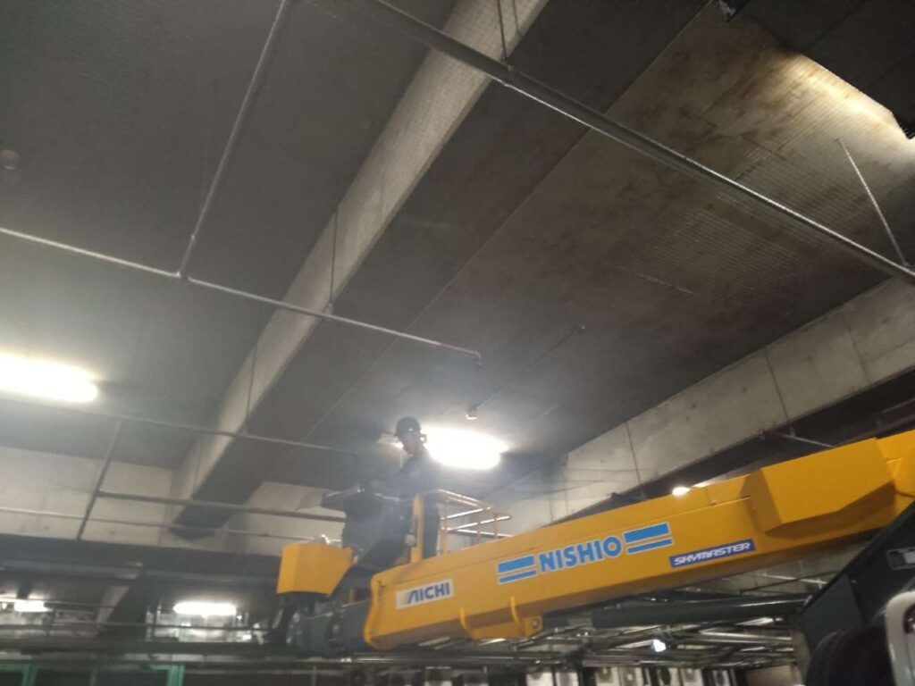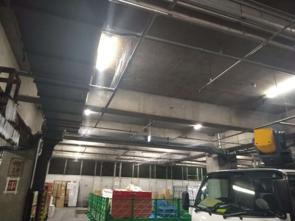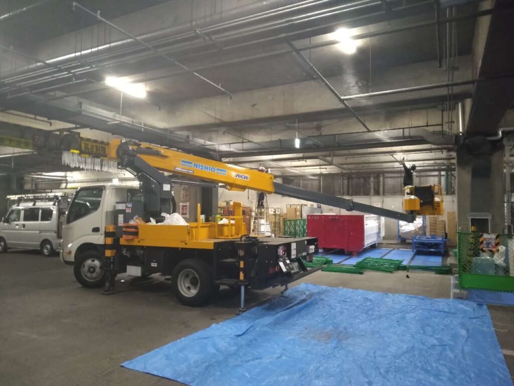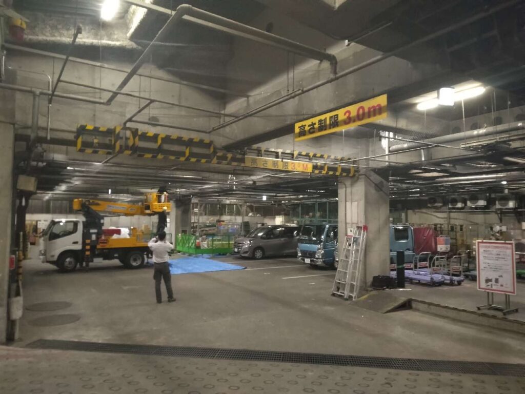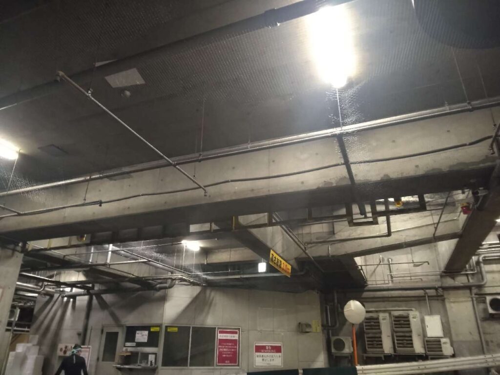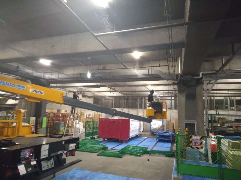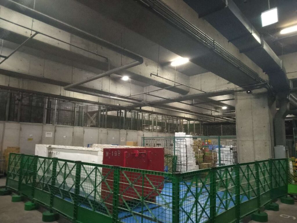 今月頭から荷捌き場の天井へ防鳥ネットを取り付ける工事を行っております。