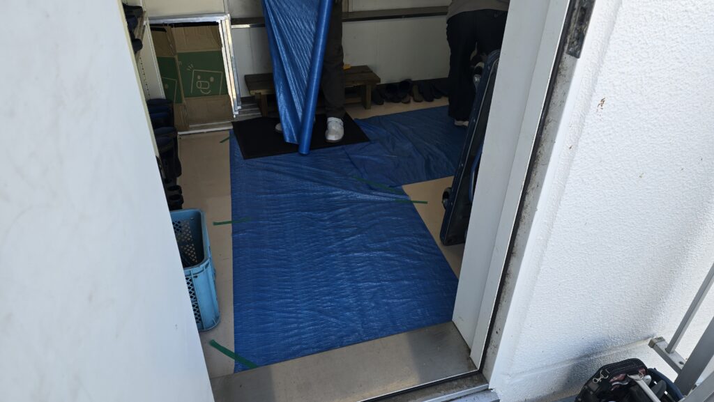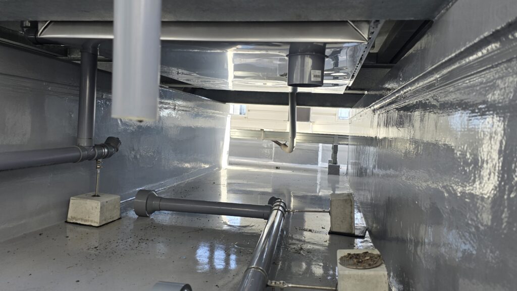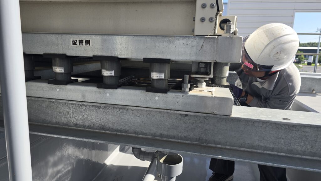 排水パンの取り付け工事です。